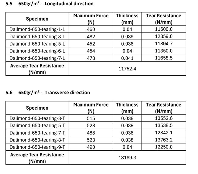 Following international standards (EN ISO-1421 and EN ISO-17679), our 190gr, 250gr, and 650gr materials were tested for: ✅ Tensile Strength: Ensuring maximum endurance under heavy loads. ✅ Tear Resistance: Guaranteeing protection even in the harshest weather conditions.